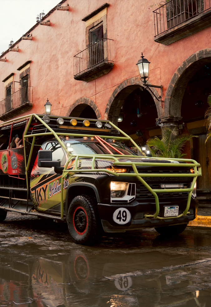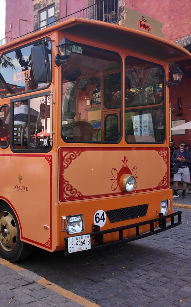 El tour comienza en el centro del Pueblo de Tequila, donde abordarás tu transporte turístico Atractivo Adventure nuestro camión tranvía o el icónico camión en forma de botella 🍾.